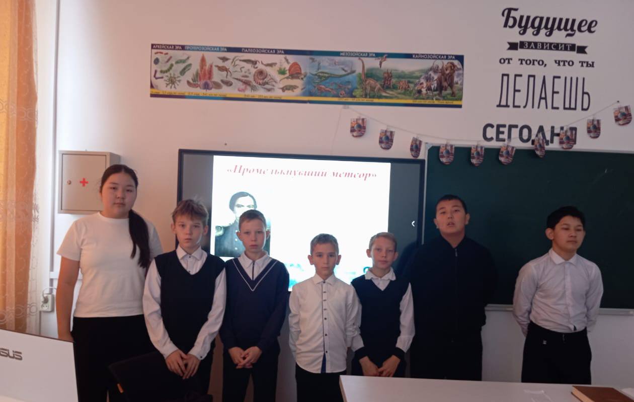 «Оқуға құштар мектеп» бағдарламасы аясында мектеп кітапханасы 7-сынып оқушыларына арналған «Жарқыраған метеор» атты тарихи портреттік көрме өткізді. Ол көрнекті қазақ ғалымы, саяхатшысы, тарихшысы және этнографы Шоқан Уәлихановтың туғанына 190 жыл толуына арналды. Іс-шара Уәлиханов мұрасын насихаттау, оқушылар арасында патриоттық сезімдерді қалыптастыру және өз Отанына деген мақтаныш сезімін ояту мақсатында өткізілді. Сондай-ақ, бұл өз елінің тарихын зерттеуге деген қызығушылықты оятты. Іс-шара барысында Уәлихановтың өмірі мен қызметі туралы презентация көрсетілді. Кітапханада «Шоқан Уәлиханов – қазақ халқының ұлы ғалымы» атты кітап көрмесі де қойылды. Оқушылар қысқа өмірінде ғылым мен тарихқа елеулі үлес қосқан ғалымның еңбегі туралы білімдерімен бөлісті. Олар сондай-ақ Айыртау ауданындағы Сырымбет ауылындағы ғалымның мұражайына барған естеліктерімен бөлісті.