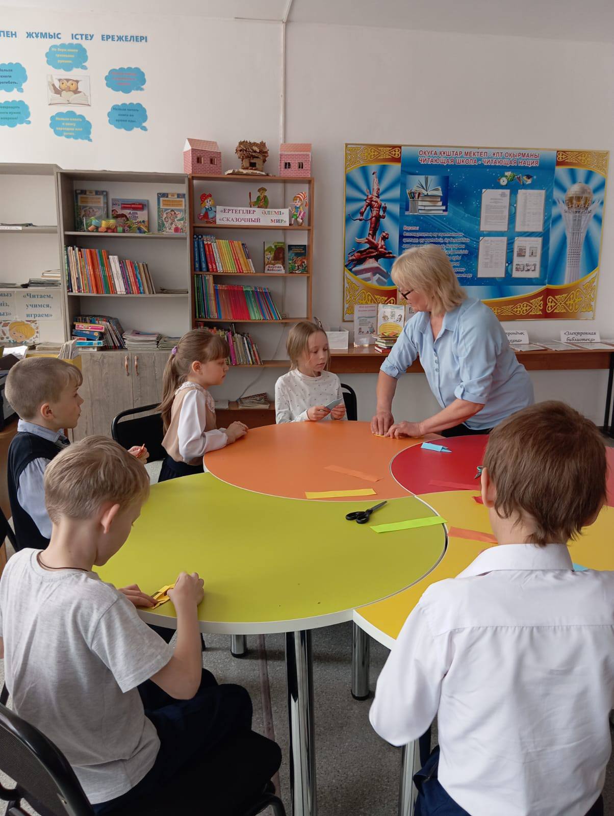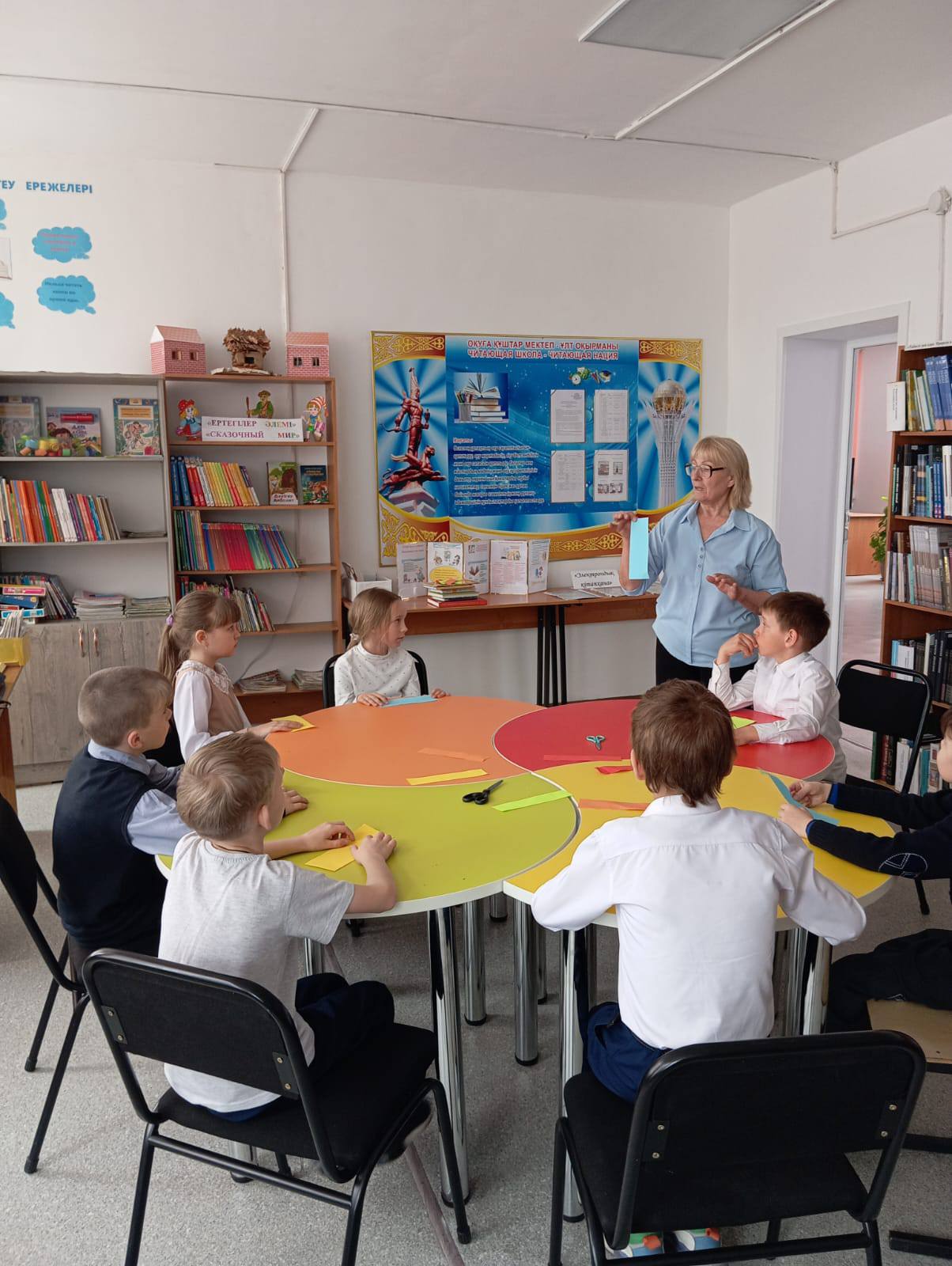 В школьной библиотеке в рамках республиканской акции "Ночь в библиотеке", в Казахстане, приуроченной к Национальному дню книги , прошел увлекательный мастер - класс для учащихся четвертого класса под названием "Подари книге закладку". Цель: формирование бережного отношения к книгам. Учащиеся на время превратились в настоящих дизайнеров, создавая своими руками уникальные закладки. Библиотека - это территория творчества и новых открытий!
