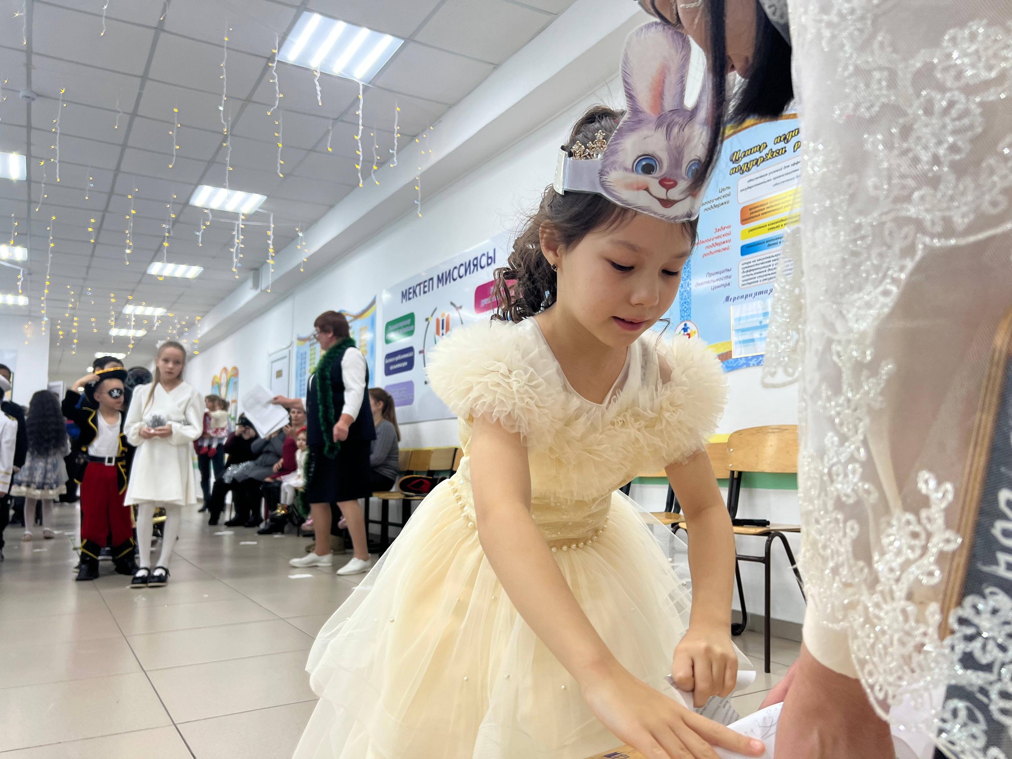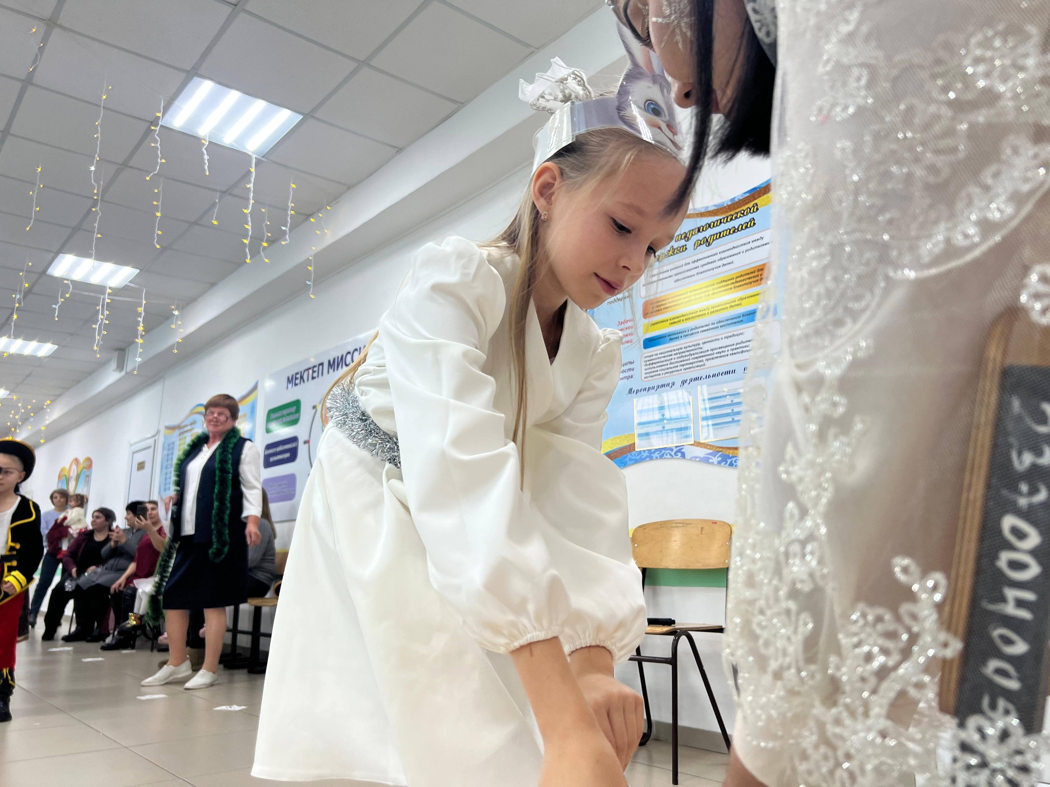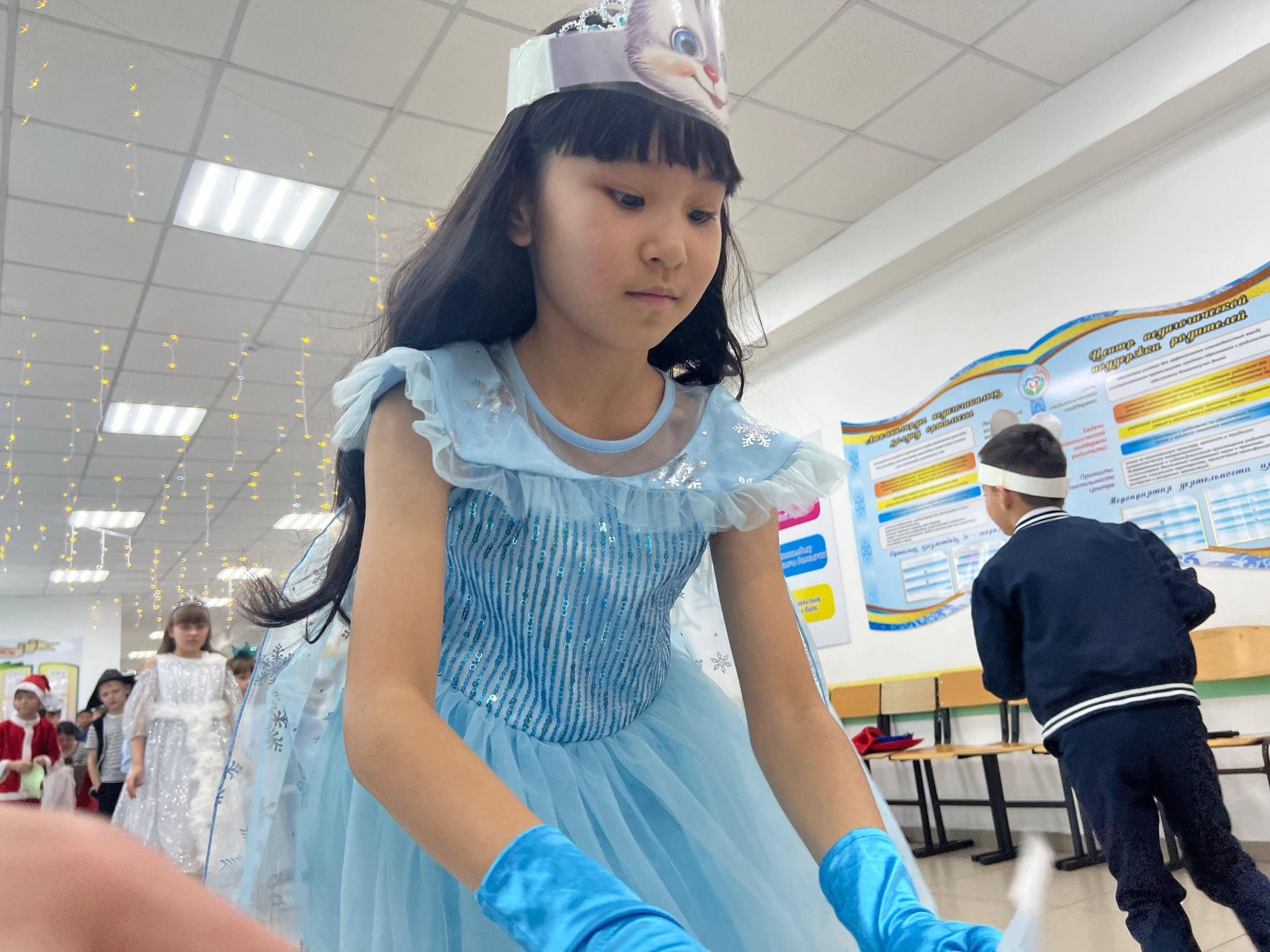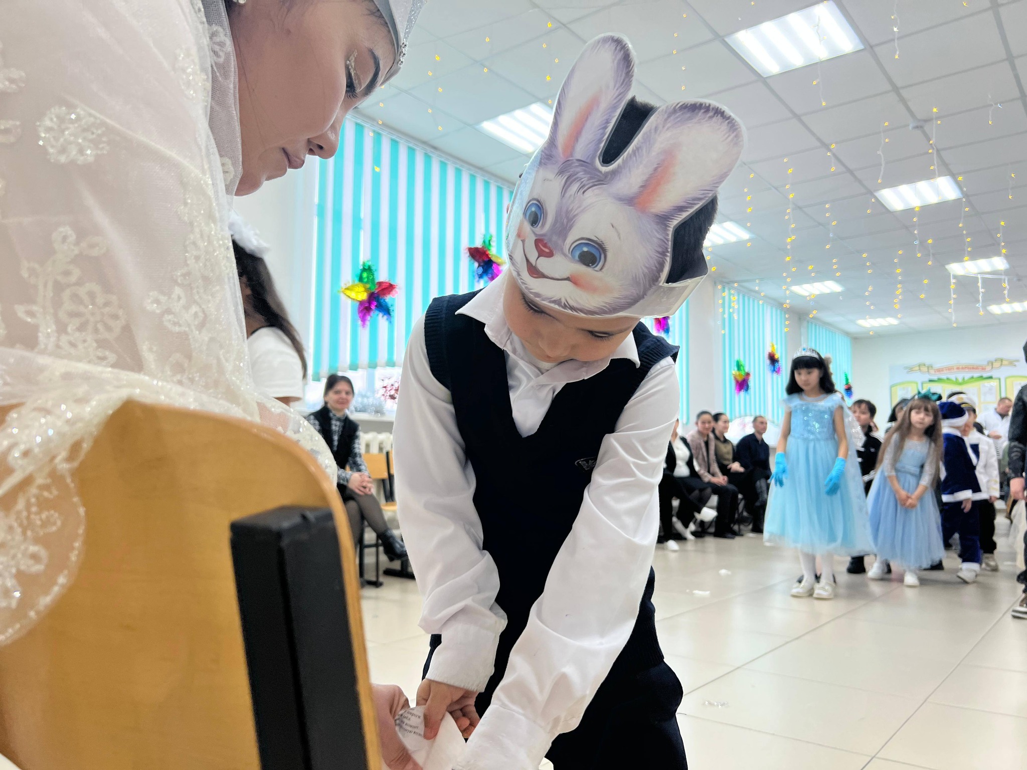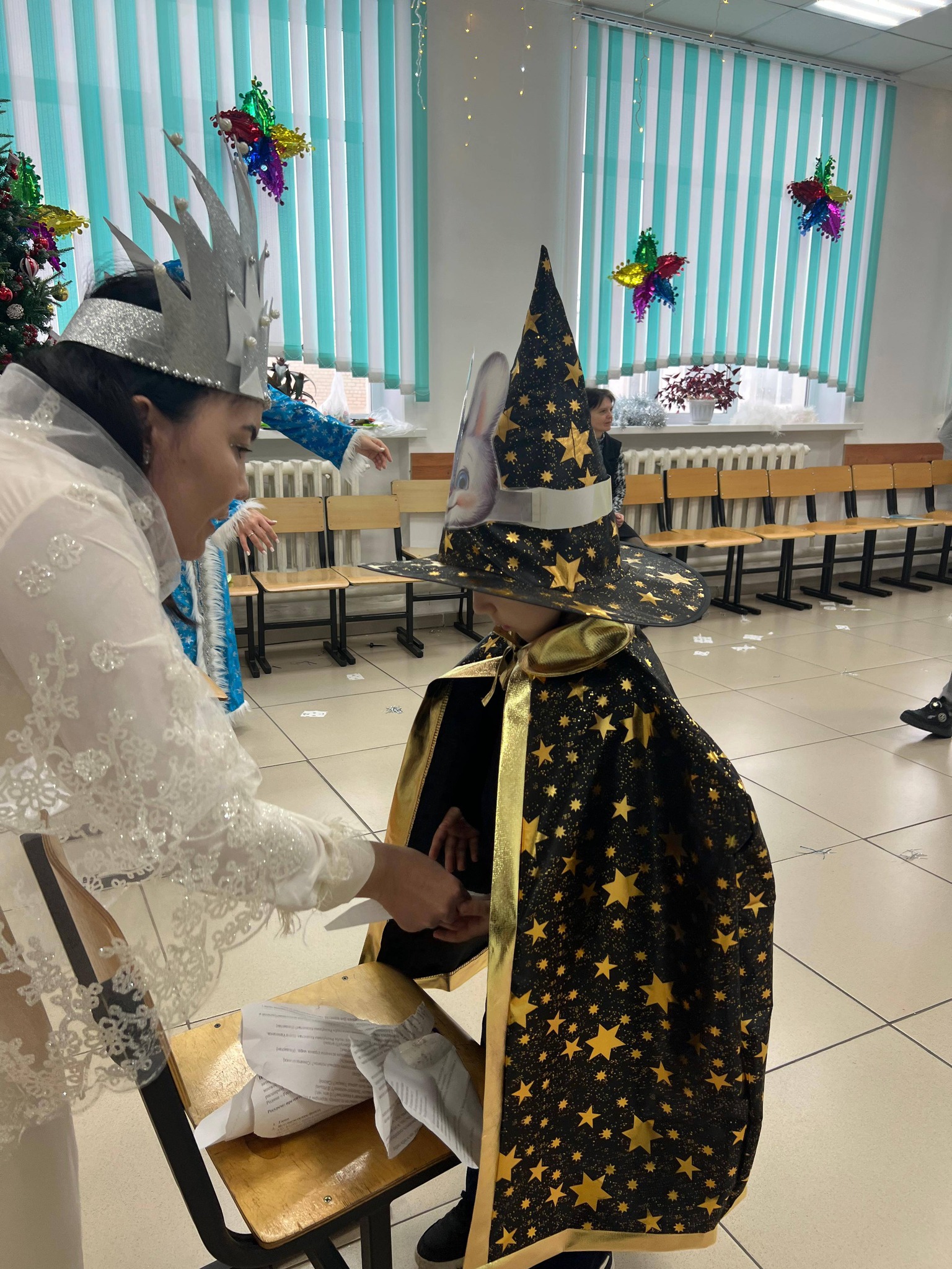 25 желтоқсан күні таңертең мектебімізге жаңа жылдық көңіл күй орнады. Бастауыш сынып мұғалімдері балаларға арналған жаңа жылдық ертеңгілік ұйымдастырды. Балалар хоровод билеп, ән айтып, би биледі. Оларға ертегі кейіпкерлері — Аяз ата мен Ақшақар, миньондар, Шрек пен Гринч қонаққа келді. Барлық балалар Аяз атадан тәтті сыйлықтар алып, Ақшақардан шағын сыйлықтарға ие болды.