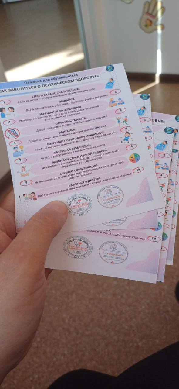 Бұл жаттығу оқушылардың өз жетістіктерін ұғынуға, өз-өзіне сенімділігін арттыруға және болашақ мақсаттарын айқындауға бағытталды.«Қолдау себеті» акциясыАрнайы дайындалған «қолдау себетіне» кез келген адам позитивті хаттар, пайдалы кеңестер мен алғыс сөздерін қалдырып, өзге адамдармен жағымды эмоция бөлісе алды. «Антистресс доп» ойыны Көңілді әрі пайдалы бұл ойын оқушылар арасындағы стрессті азайтуға және жағымды қарым-қатынасты нығайтуға арналды. Ойын барысында балалар «антистресс добын» бір-біріне лақтырып, жылы сөздер мен комплименттер айтты. Барлық іс-шаралар достыққа негізделген, жылы шырайлы атмосферада өтті, оқушылардың эмоциялық жағдайының жақсаруына, бірлік сезімінің нығаюына және психикалық денсаулық тақырыбына деген қызығушылықтың артуына ықпал етті.