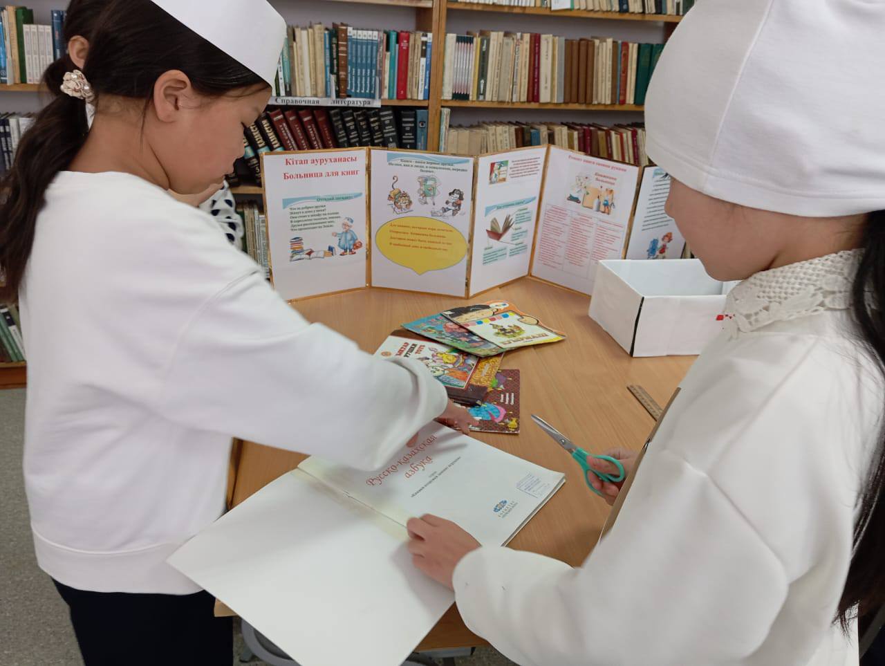 В школьной библиотеке была проведена акция по культуре обращения с книгой и ремонту ветхих книг "Будь здорова книжка". Из рассказа библиотекаря ребята узнали, что со временем библиотечным книгам нужен ремонт по причине их старения, небрежного обращения читателей с книгами. Участники акции расправляли загнувшиеся страницы, стирали ластиком пометки, ремонтировали корешки книг. Занимаясь ремонтом книг, дети увлеклись новым, по настоящему полезным делом. В ходе мероприятия ребята почувствовали важность своей работы и пришли к выводу: книги надо беречь. Это замечательная акция, труд и полезный урок, который ненавязчиво учит любить книгу. Отремонтированные книги получили "вторую жизнь".