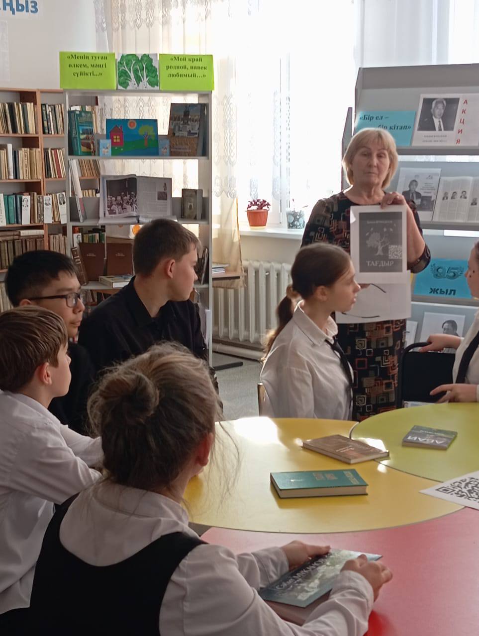 В школьной библиотеке среди учащихся 9 класса был проведен литературный час "Мастер пера" , в рамках акции "Одна страна - одна книга". Для учащихся был представлен информационный обзор по книжной выставке "Одна страна - одна книга". В 2026 году главной книгой для всеобщего чтения выбран роман Народного писателя Казахстана Кабдеша Жумадилова "Судьба"- одно из ключевых произведений казахской литературы. Роман рассказывает о трагической судьбе народа вдали от родины, о боли утрат, силе духа и верности. Произведение основано на реальных событиях и отличается высокой художественной достоверностью. Учащиеся прочитали отрывки из произведений, приняли участие в обсуждении романа. Произведения К. Жумадилова остаются актуальными и любимыми, продолжая пробуждать историческую память, воспитывать уважение к родной культуре и вдохновлять новые поколения.